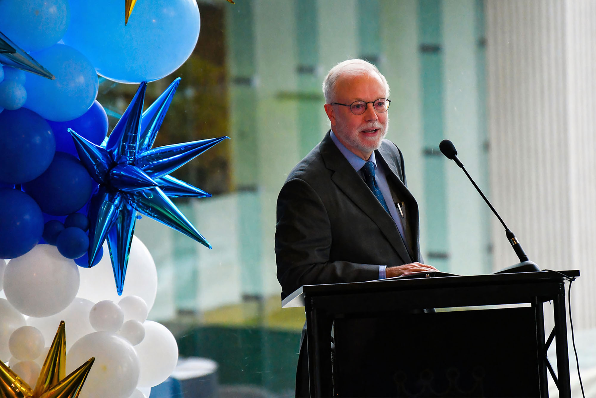 Don Hall Jr., executive chairman of the board of directors for Hallmark Cards, speaks during an announcement event for the Kansas City Royals planned ballpark district at Crown Center; photo by Austin Barnes, Startland News
