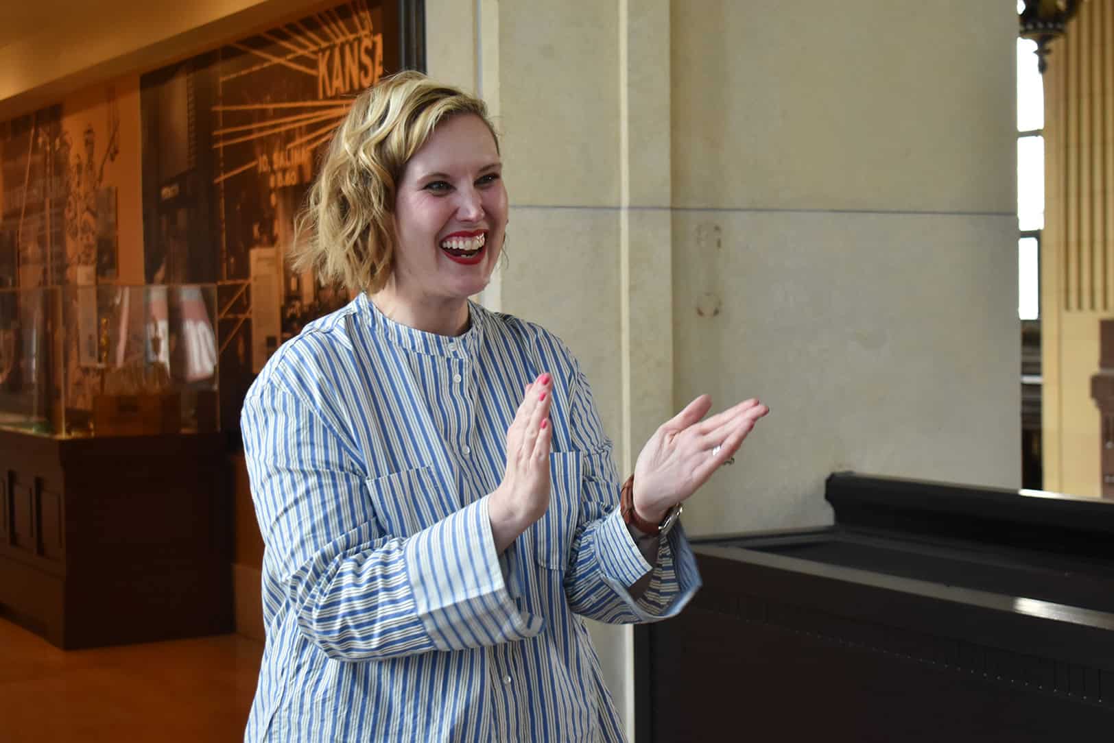 Vicky Kulikov, director of small business for the KC Chamber, speaks after the Top 10 reveal at Union Station; photo by Austin Barnes, Startland News