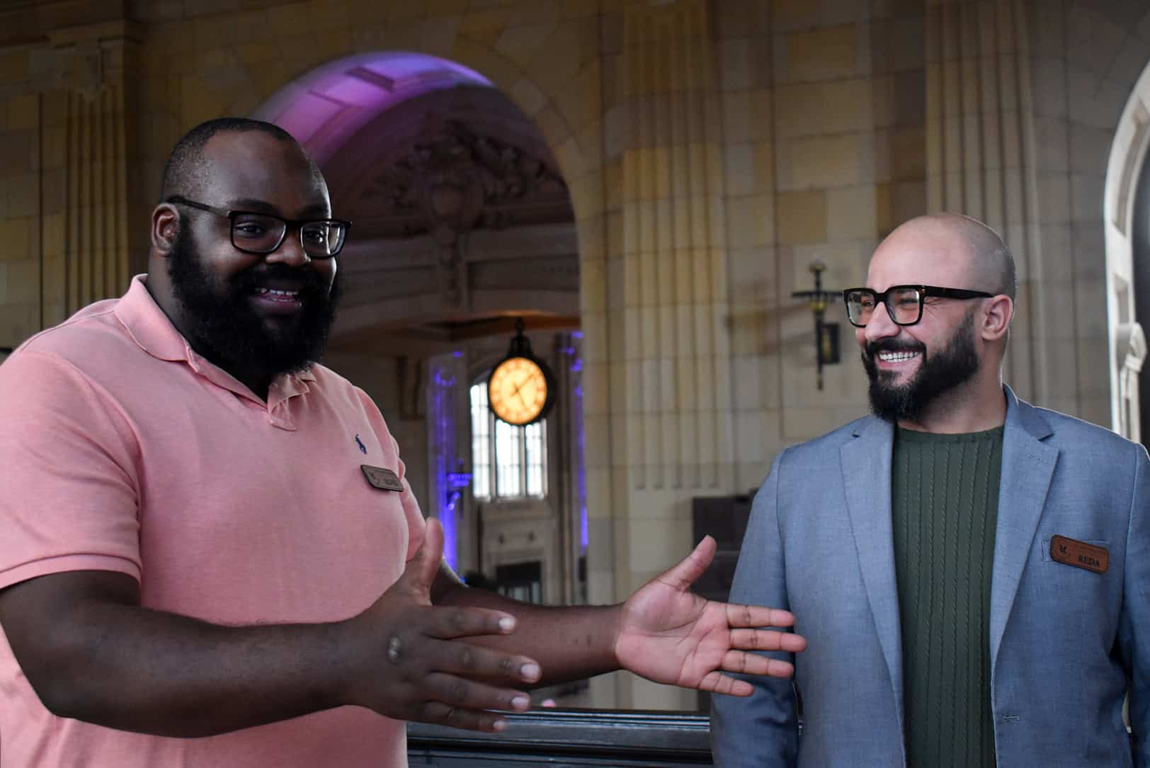 Elvis Eneh, COO for RK Contractors, speaks alongside founder Reda Ibrahim at Union Station; photo by Taylor Wilmore, Startland News