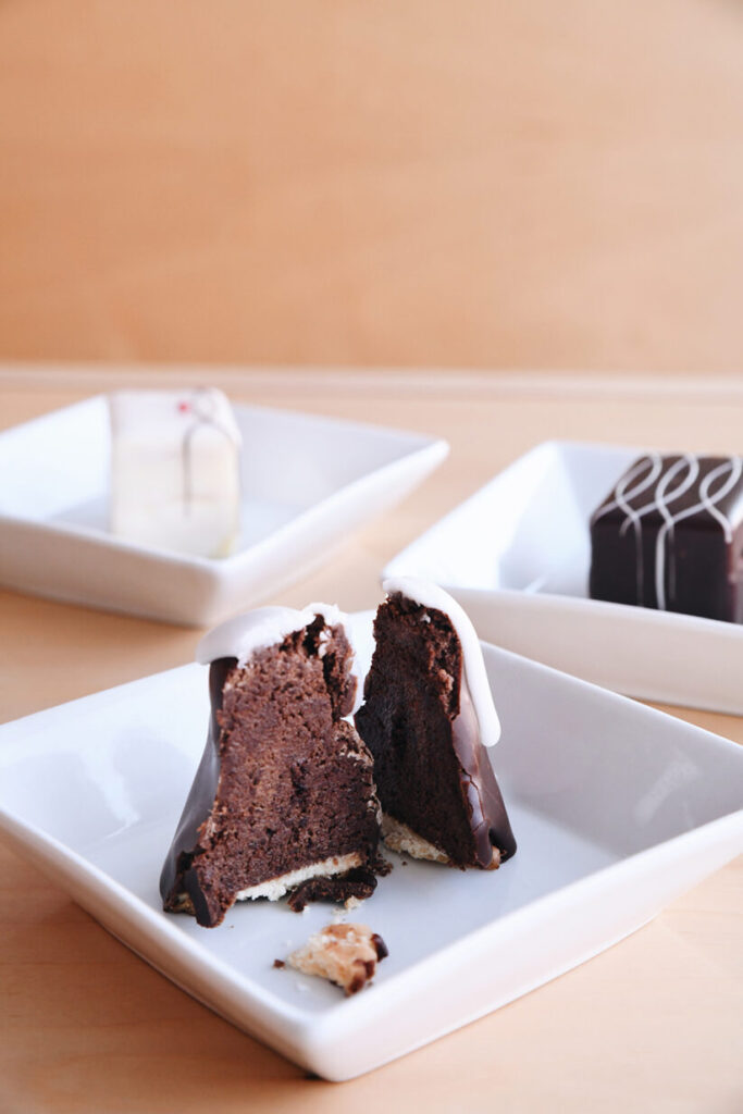 The Matterhorn — a butter cookie base, chocolate cake and chocolate buttercream, topped with a dollop of white icing to suggest a snow-capped mountain — from André’s Confiserie Suisse; photo by Anna Petrow