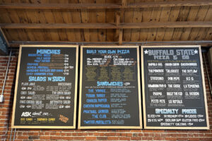 The wide-variety menu at Buffalo State Pizza; photo by Joyce Smith