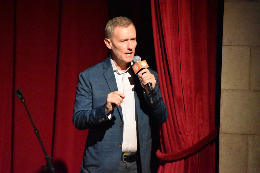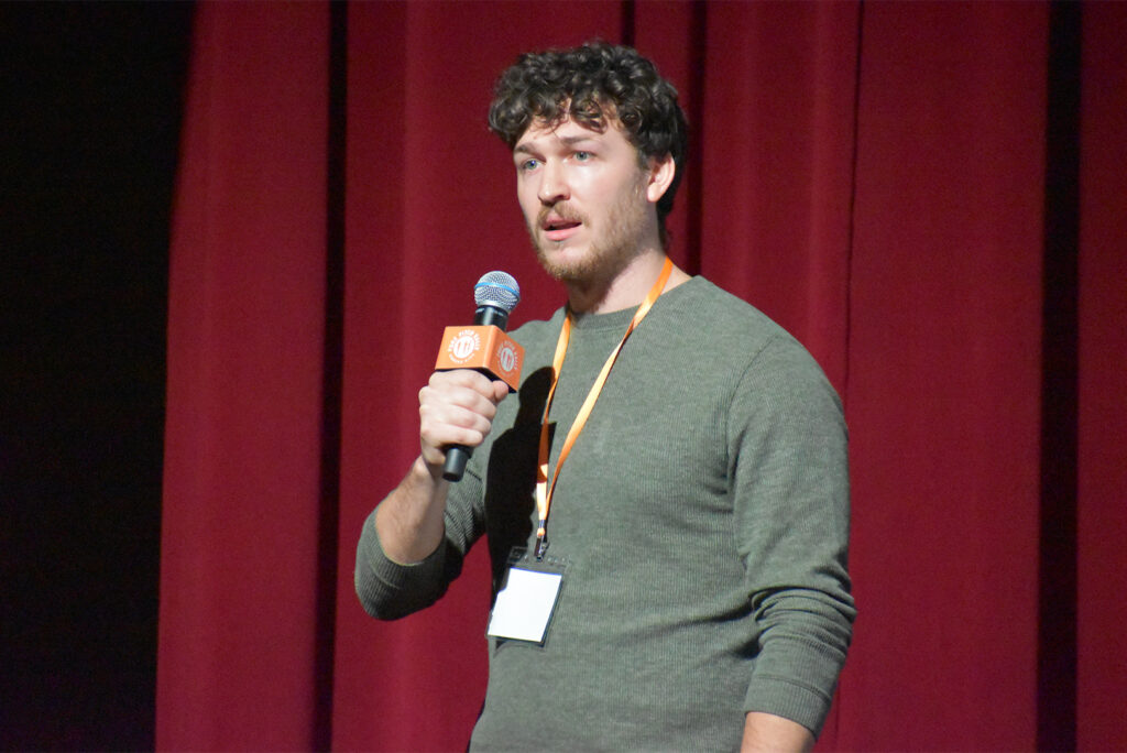 Ian Foster pitches his company, SiteScan, at the 2025 Pure Pitch Rally; photo by Nikki Overfelt Chifalu, Startland News