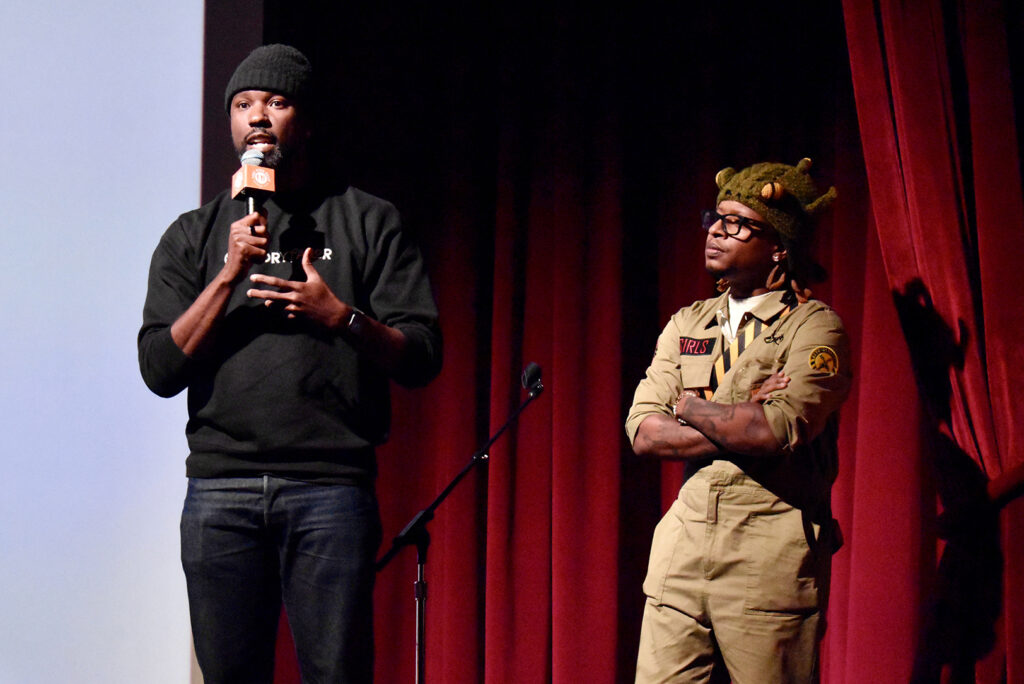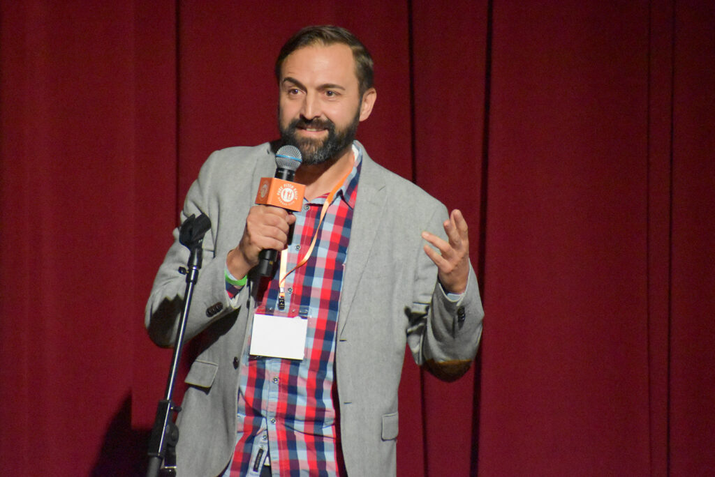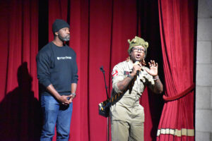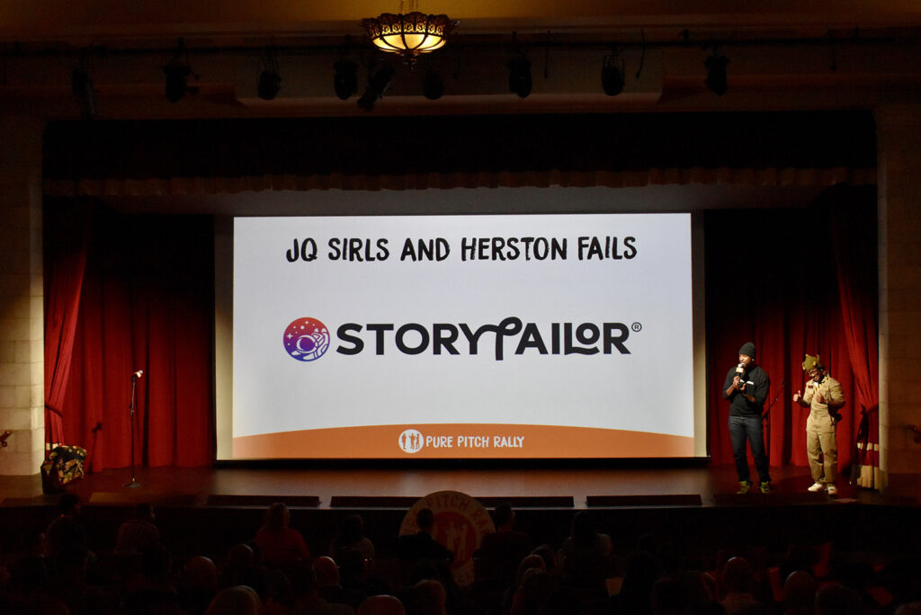 Herston Fails and JQ Sirls, StoryTailor, on stage at the Pure Pitch Rally; photo by Nikki Overfelt Chifalu, Startland News