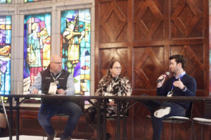 Greg Kratofil, Polsinelli, left, participates in a panel at the first MidxMidwest in 2022, alongside Christie Zarkovich, Health Forward Foundation, and Tristan Mace, Flyover Capital; Startland News photo