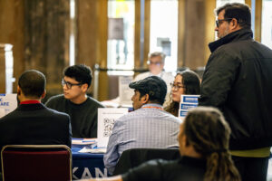Entrepreneurs visit with Regina Sosa, EDCKC, and representatives from the KC BizCare Office during November’s Small Business Day at City Hall; photo courtesy of the KC BizCare Office