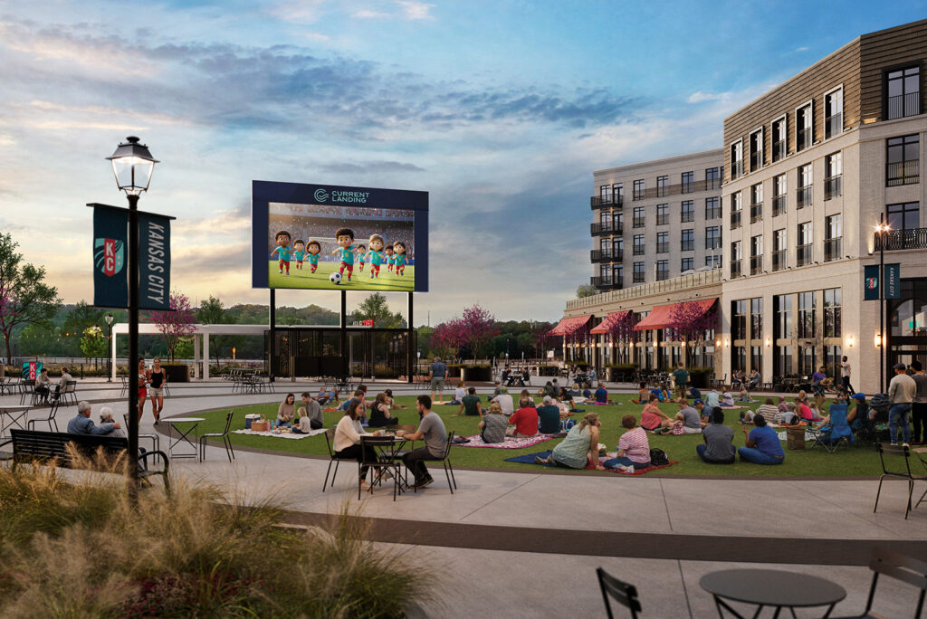 Anchored by CPKC Stadium and the Missouri River, Current Landing is set to feature “a dynamic blend of elevated waterfront residential living, best-in-class dining, one-of-a-kind sports and community entertainment, and irreplaceable riverfront gathering spaces designed to transform the fan and community experience year-round.”