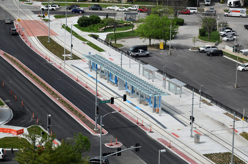 The KC Streetcar platform on the Country Club Plaza, before its opening in April 2025; photo by Tommy Felts, Startland News