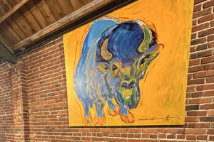 A buffalo-themed painting by longtime Overland Park artist Nicole Emanuel at Buffalo State Pizza; photo by Joyce Smith